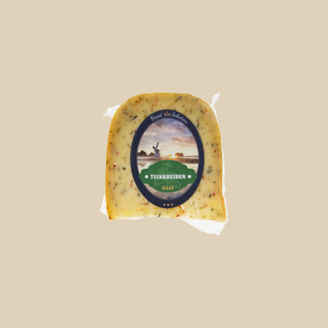 Een mooi gevacuümeerd cadeaupuntje kaas met tuinkruiden. Lekker fris dankzij de tuinkruidenmix: paprika, bieslook en ui. Super romig van smaak, dankzij de korte rijpingstijd (jong). Een ideaal kaasje om te verwerken in cadeaupakketten.